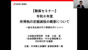 日本商工会議所では、本年6月に納税者とその扶養家族を対象に1人あたり4万円(所得税3万円、住民税1万円)を減額する「定額減税」が実施されることを踏まえ、標記の動画セミナーをYouTubeに掲載いたしました。