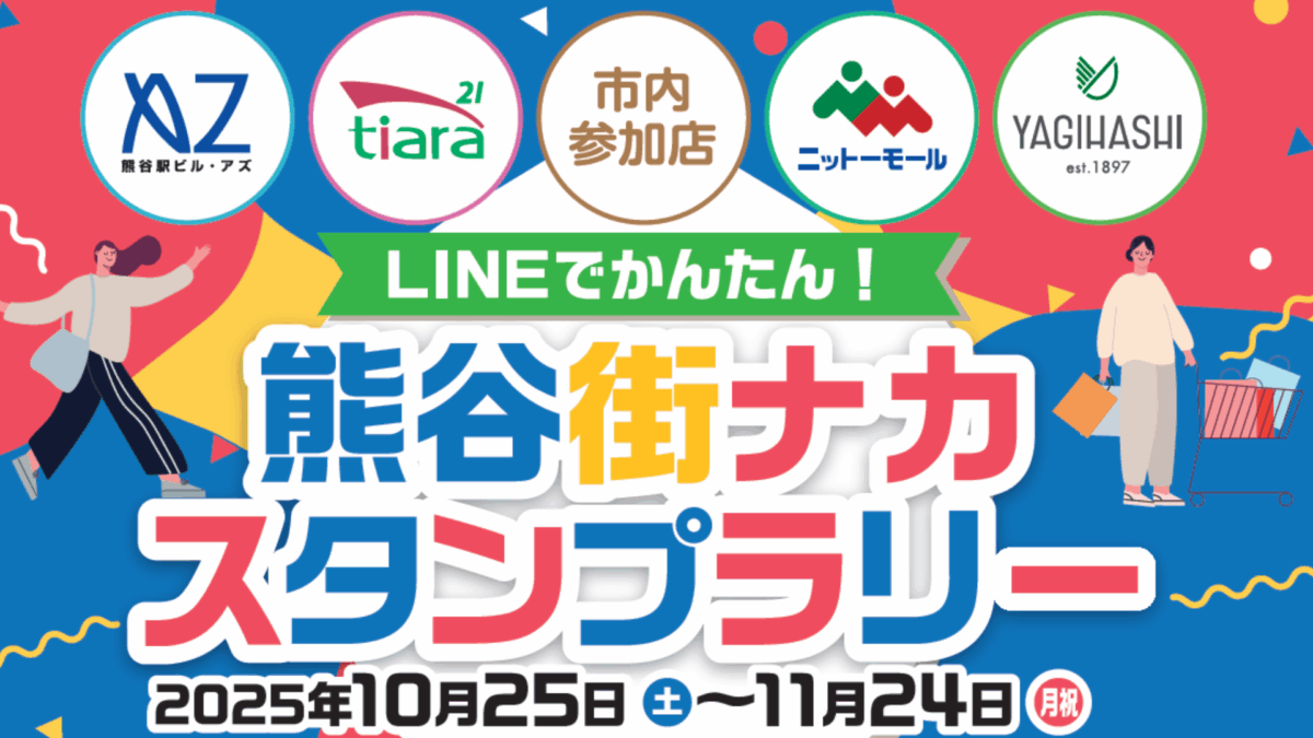 まちなか元気事業の一環として、「LINEでかんたん!熊谷街ナカスタンプラリー」を開催します。対象店舗をご利用いただきデジタルスタンプを集めると、集めたスタンプの数や種類に応じて賞品がもらえます。